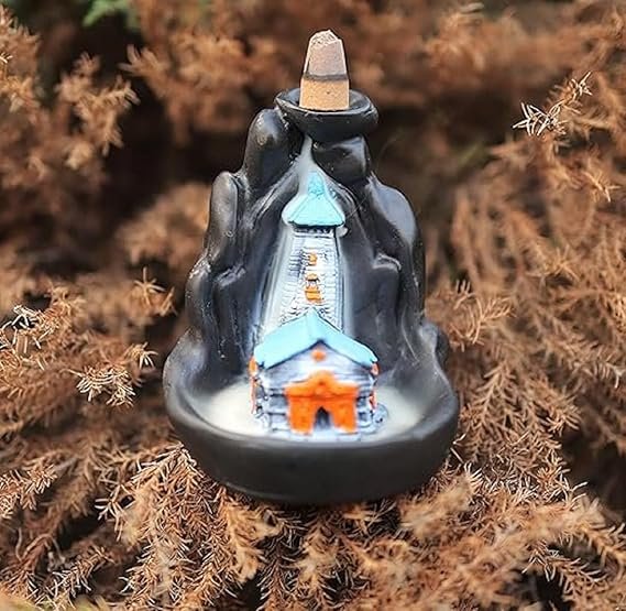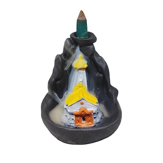 This unique Kedarnath Smoke Idol piece functions as a captivating backflow incense burner. By placing a backflow incense cone at the top of the Kedarnath Temple, you can witness a breathtaking “smoke waterfall” effect. The dense smoke gracefully cascades downwards, creating a mystical and calming visual spectacle that mimics a flowing river. This tranquil display, combined with your favorite incense fragrance, creates an ambiance of peace, relaxation, and spiritual harmony.